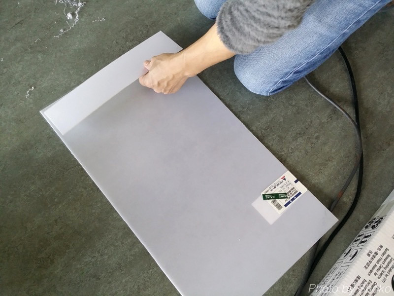 アクリル板をカットしています。