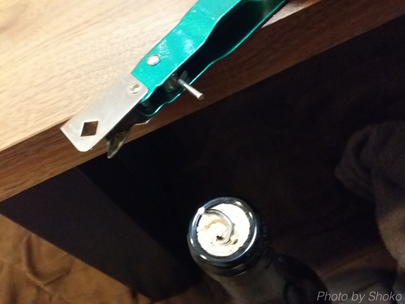 コルク抜きをクルクルクルと差し込んで、いざ抜こう!