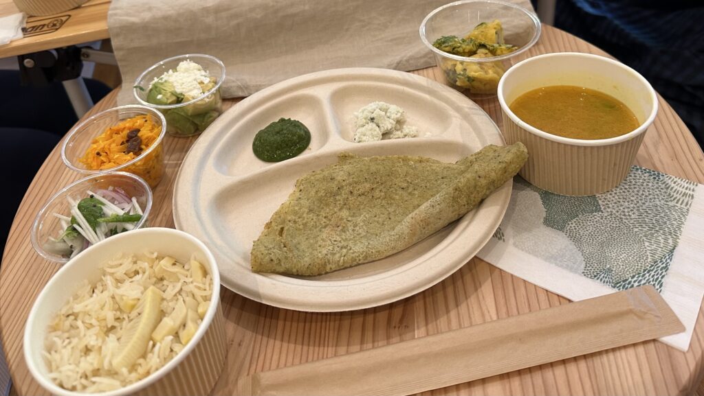 旬のお野菜、ギー(良質なオイル)、スパイスなどを使った消化に良いベジタリアンメニュー。