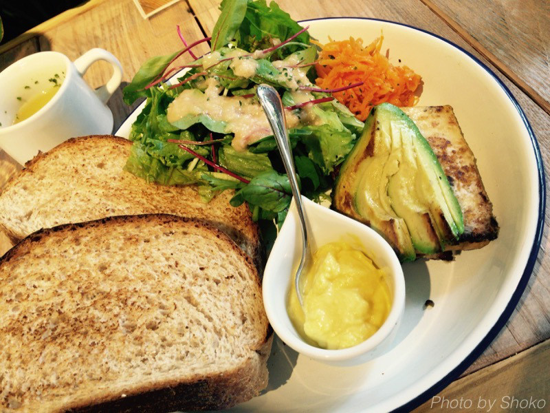 全粒粉のパンとアボガド・お豆腐ステーキ、そして自家製マヨネーズ。