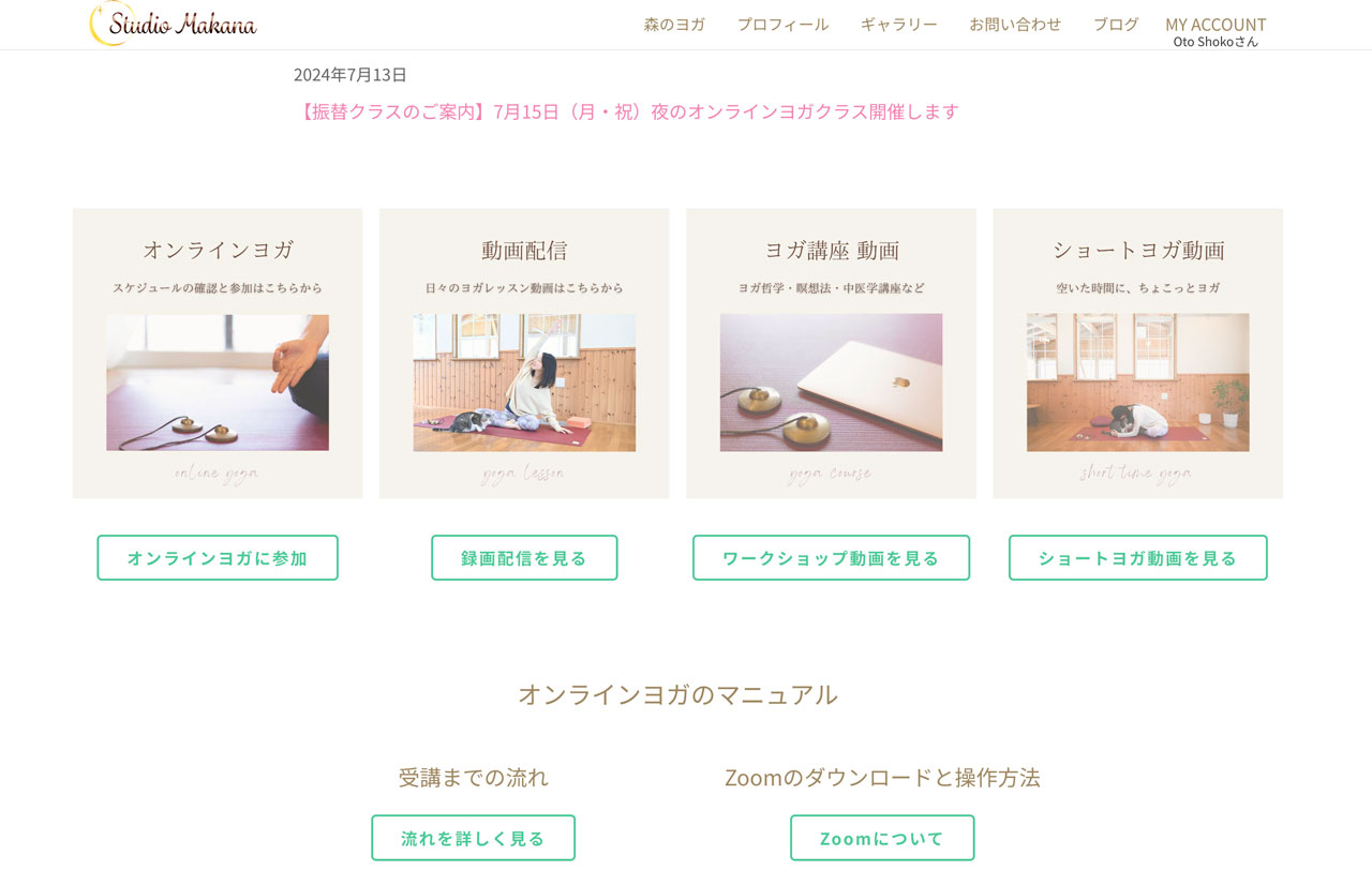 「ショートヨガ動画配信」のページを追加しております!(写真右側)