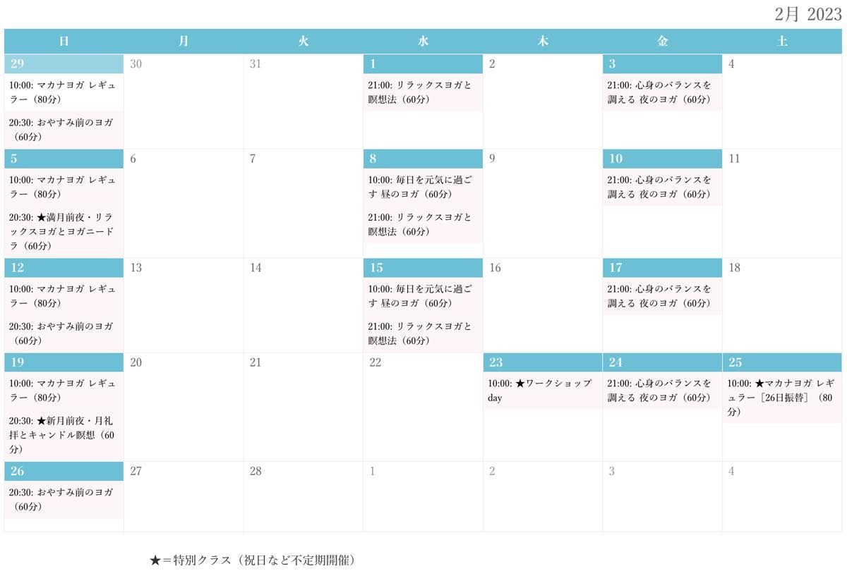 2023年2月のオンラインヨガ スケジュールをご案内いたします。