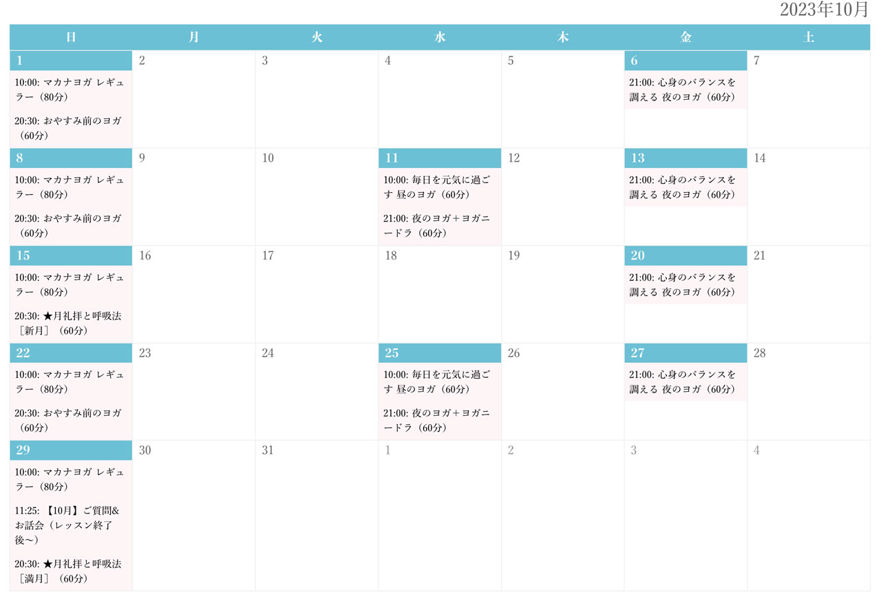 2023年10月、ヨガスケジュールのご案内です。