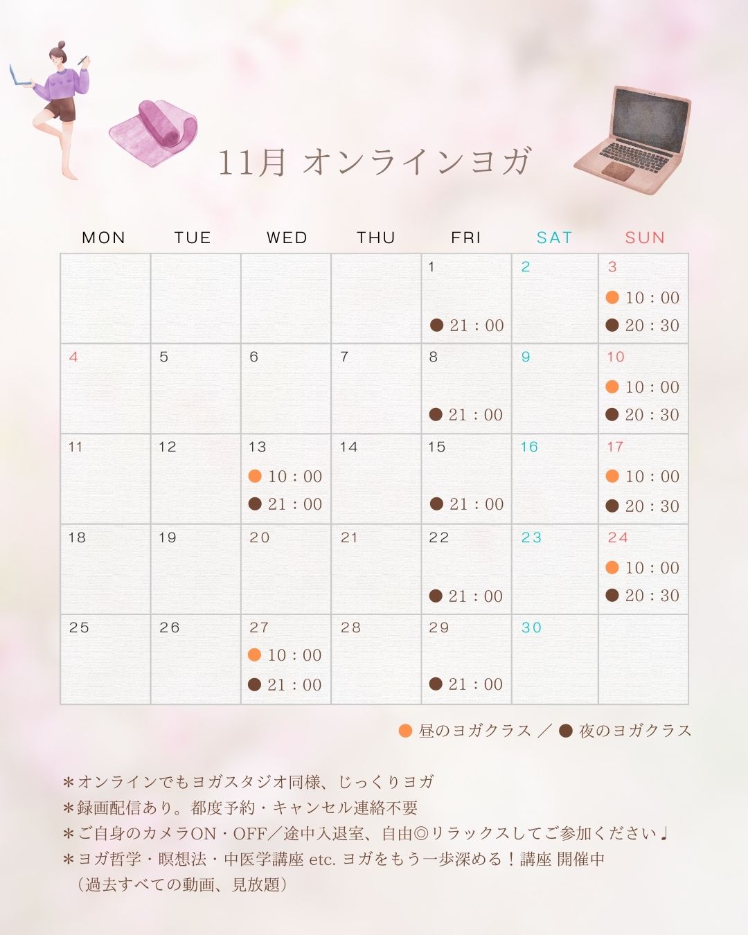 ◯【2024年11月】 オンラインヨガ・スケジュール