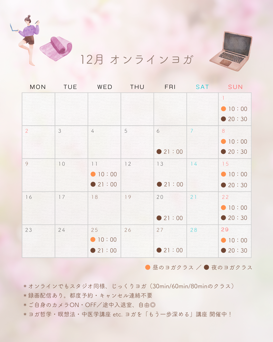◯【2024年12月】 オンラインヨガ・スケジュール