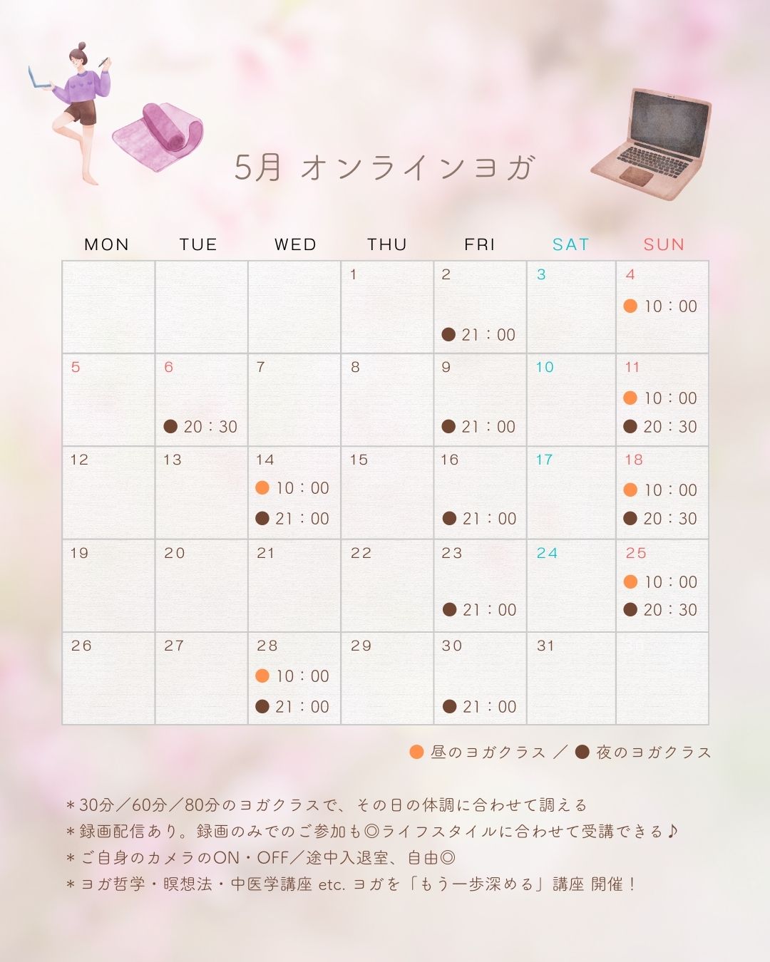 5月も一緒にヨガの時間を過ごせること、楽しみにしております。
