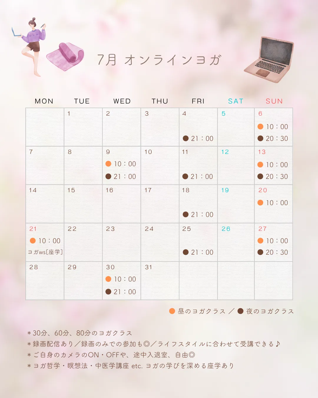 ・7月20日(日)夜クラス→ 7月21日(月)10:00〜11:00に変更