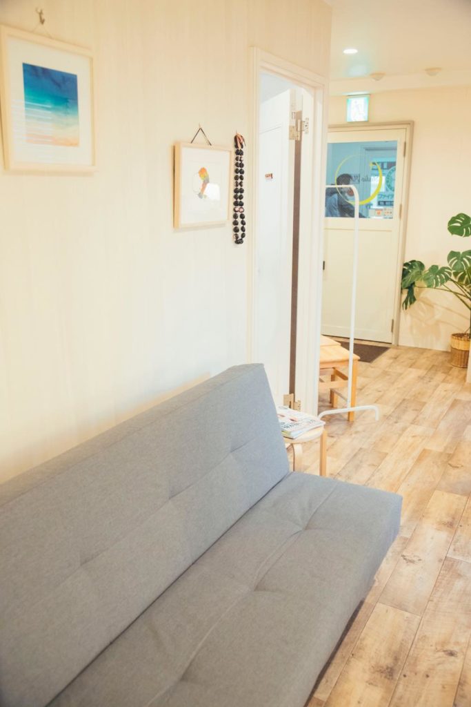 [ロビースペース:レッスン前後の寛ぎに ♪ お飲みものもご用意しています]