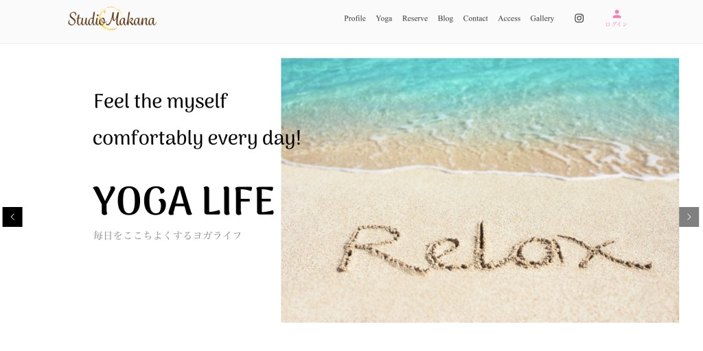 スタジオマカナ・ホームページにアクセスすると、右上に「ログイン」というピンク色のアイコンが出てきます。
