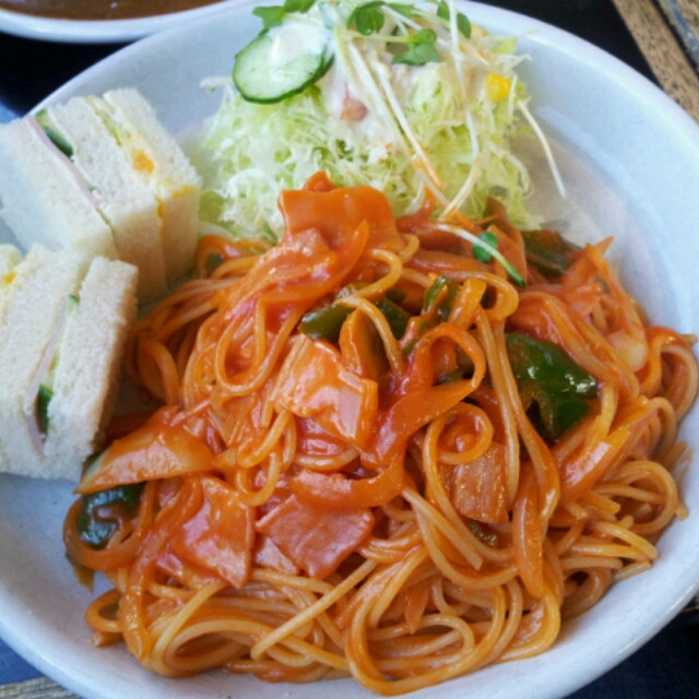 ナポリタン・サラダ・サンドウィッチ・ドリア・スープ。