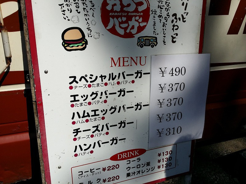 メニューはシンプルで、バーガー数種類とドリンクのみ。