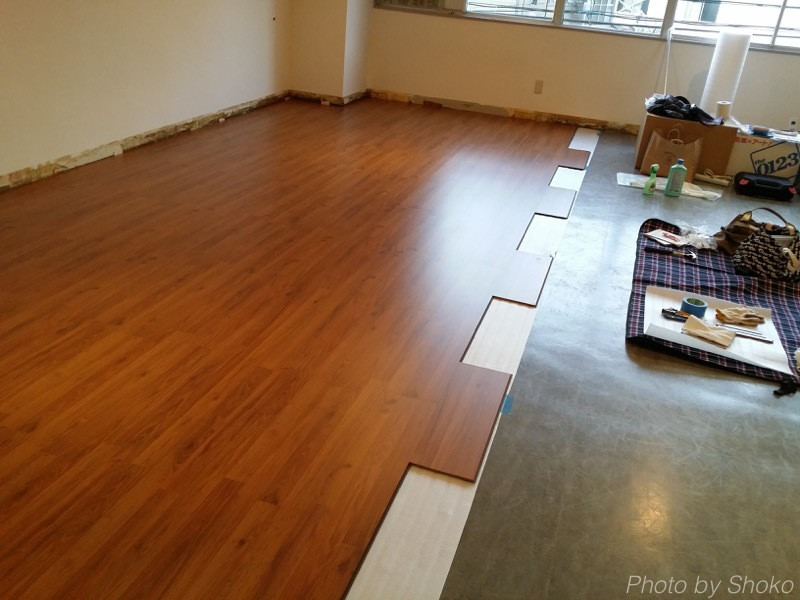 釘・接着剤を使わずに施工するタイプのフロアです。