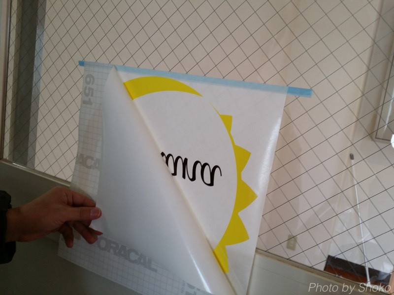 ロゴデザインでカッティングシートをオーダーして貼り付けました。