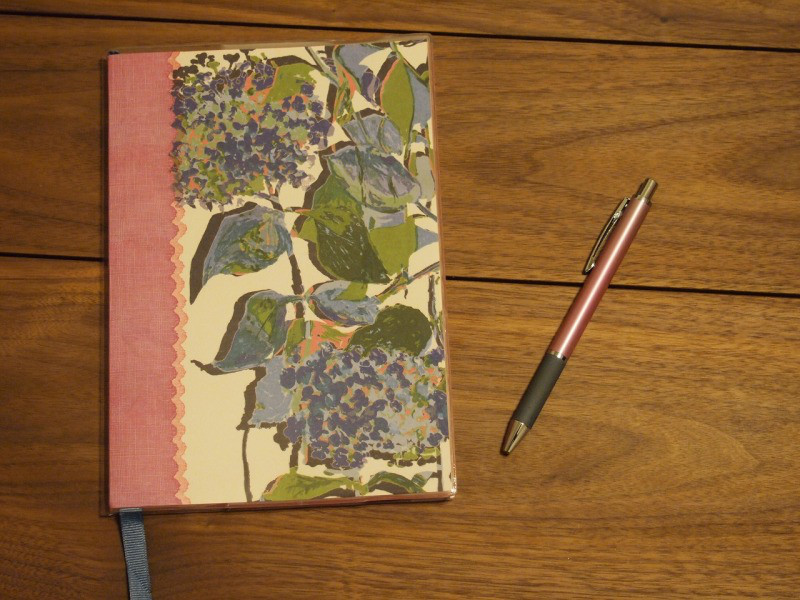 旅の思い出記録用のノートとペン、ハサミなどの文具。